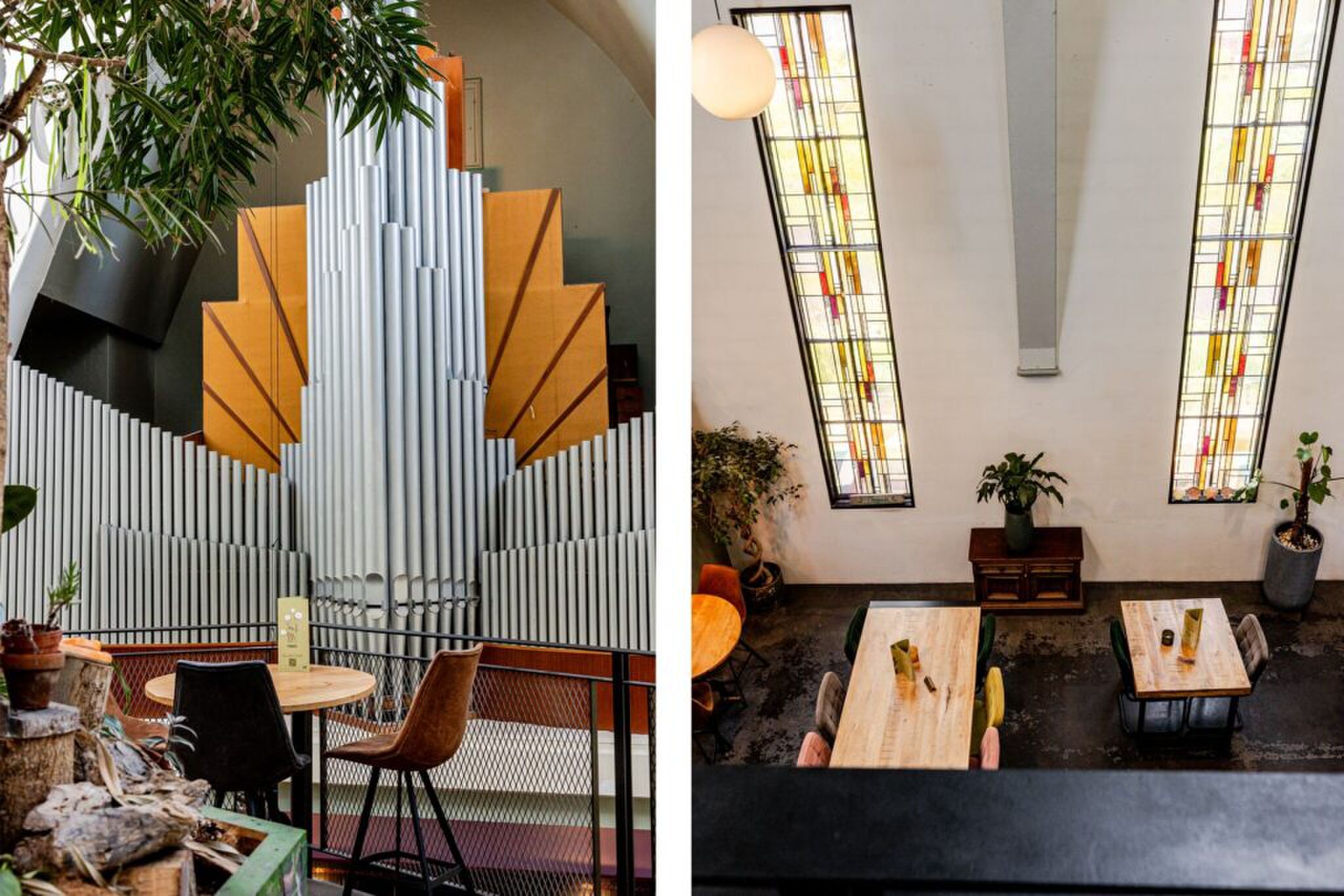 Verder is de kerkzaal zelf een ruimte van bijna 13 meter hoog, waarin nog steeds het originele pijporgel te bewonderen is. Er is zelfs een enorme boom van zeven meter hoog in het midden van de ruimte geplaatst, wat wel héél opmerkelijk is. Doordat de woning technisch volledig is afgescheiden van het commerciële deel, blijft het wonen privé, zelfs terwijl er onder je koffie wordt gebrand of yogalessen worden gegeven.