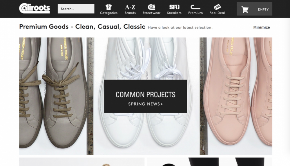 Caliroots is een winkel uit Stockholm en bezorgen sinds 2003 de tofste releases. Zij hebben een goed Nike-account, dus krijgen alle exclusives. Maar geldt dit voor ieder merk, zoals Adidas, Vans en Converse. Naast streetwear hebben ze ook een skatewinkel en een winkel die zich richt op premium merken, zoals Alexander Wang, Norse Projects en Our Legacy, wellicht meer iets voor jou.