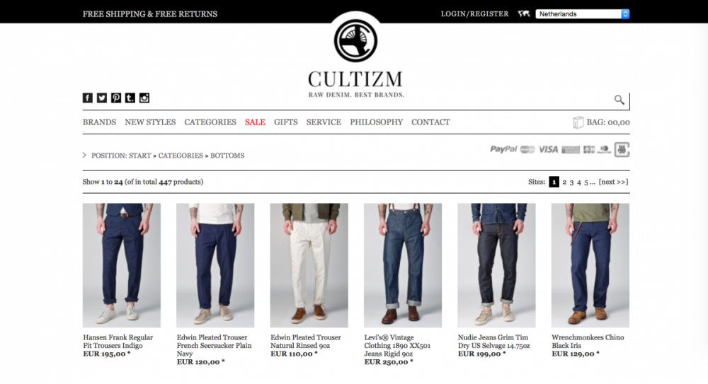 Ben je een denim liefhebber? Dan moet je Cultizm kennen. Hier kan je terecht voor al je denimfantasieën. Ze hebben toegankelijke, bekende merken als Levi’s, Lee en Nudie, maar voor de denimheads onder ons ook mooie merken als Momotaro, 3sixteen en Rogue Territory.