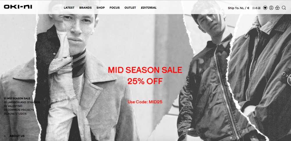 Hier op kantoor noemen we dit ook wel de Zalando van de toffe merken. Want wat heeft End een belachelijk groot aanbod, alleen dan met kledij die je daadwerkelijk wilt hebben. Van meer straat gerelateerde merken tot high-end. Ze hebben Japanse merken, Italiaanse designers en ieder Scandinavisch merk dat er bestaat. Fijne website en goede lookbooks. Ja, End is het einde.