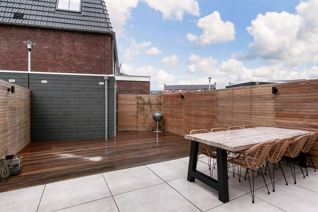 De woning heeft ook een eigen achtertuin. Het is een ruime volledig betegelde achtertuin met ook nog een eigen schuurtje.
