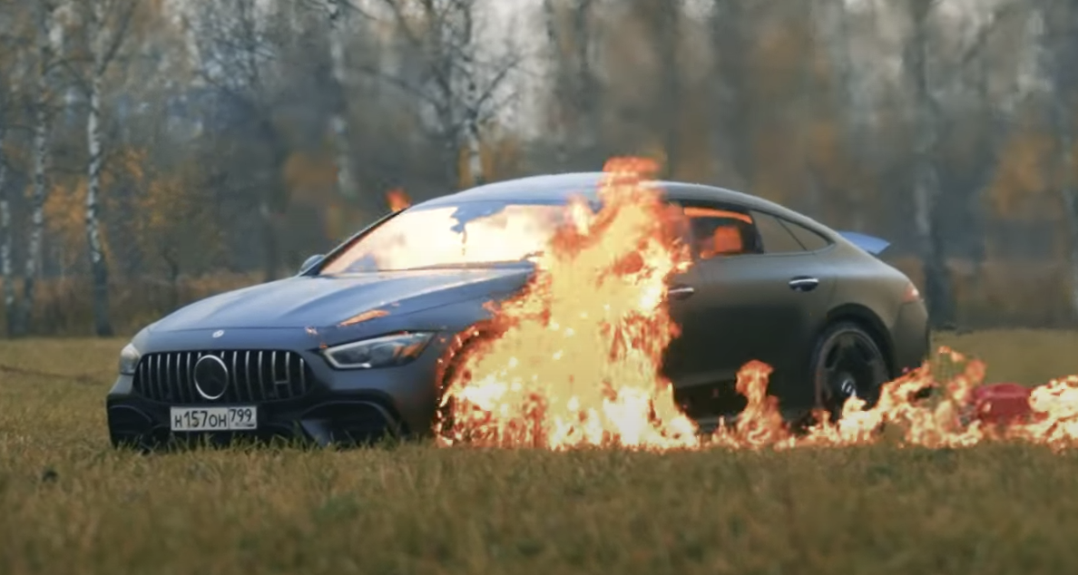 Bizar: Russische YouTuber steekt Mercedes AMG GT 63S in brand